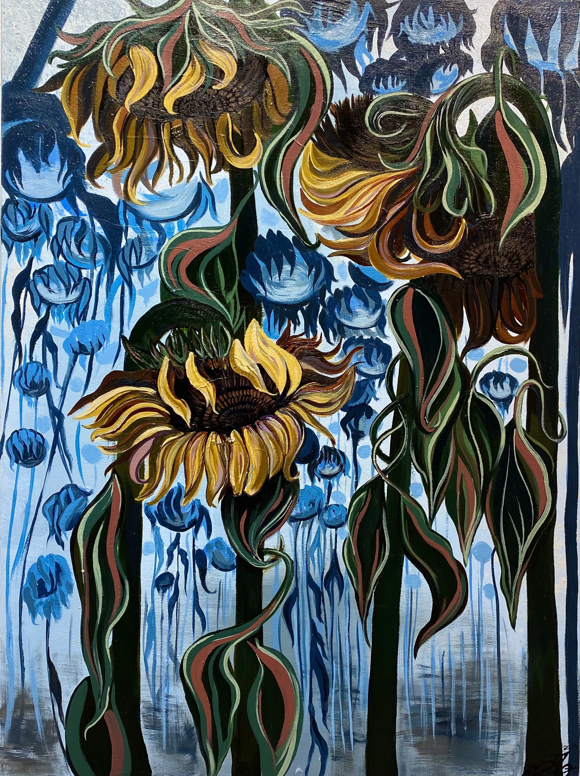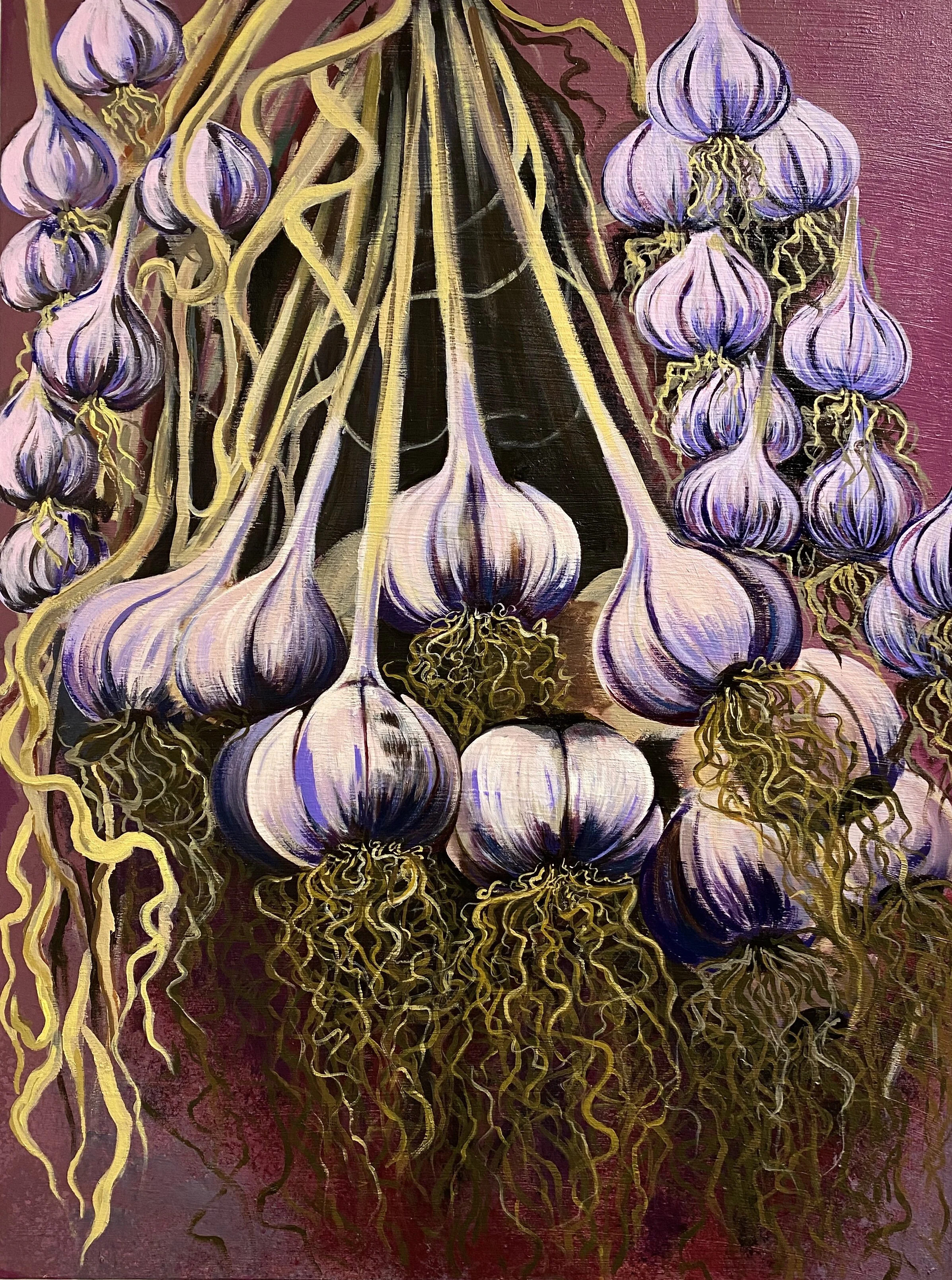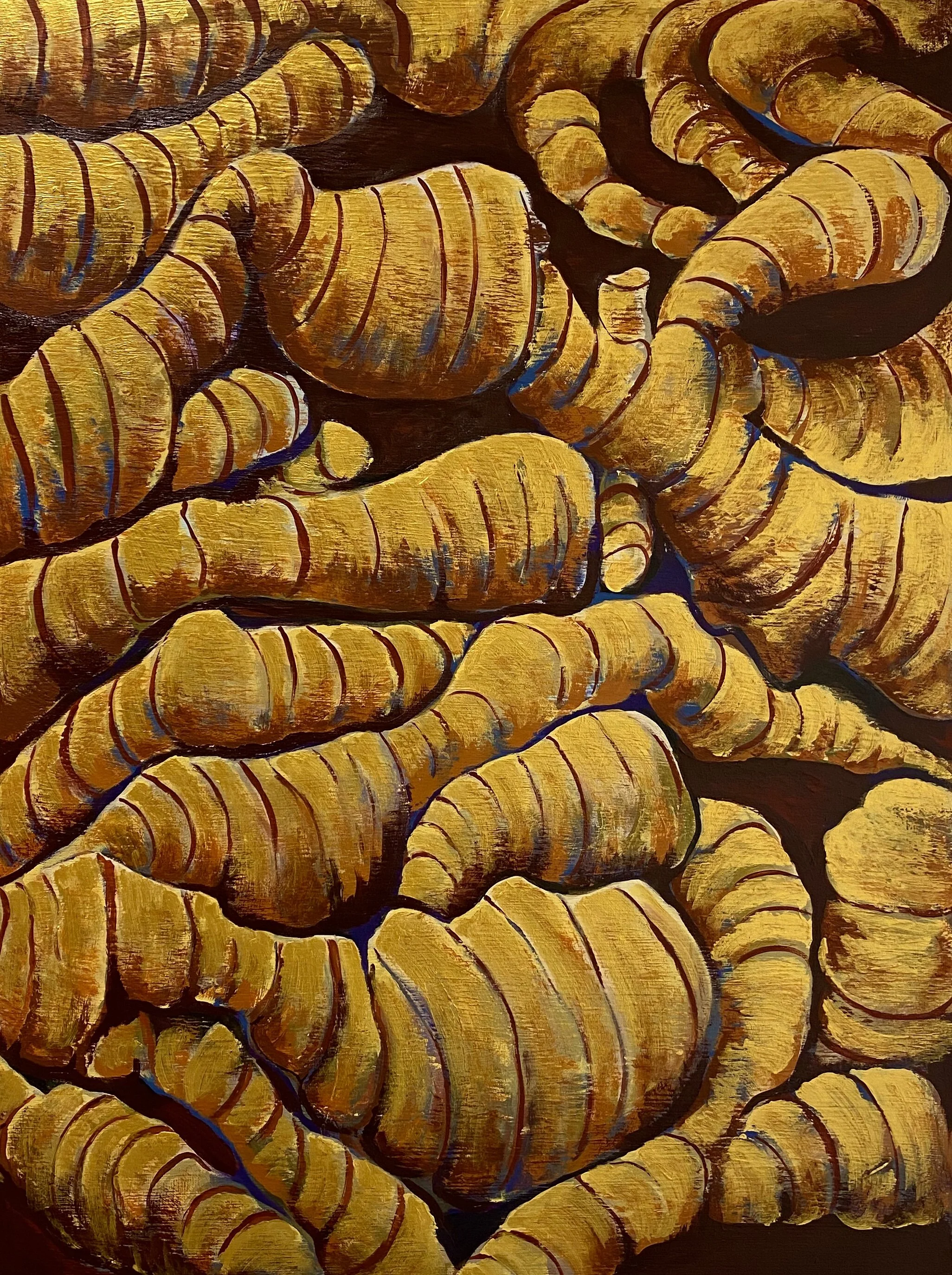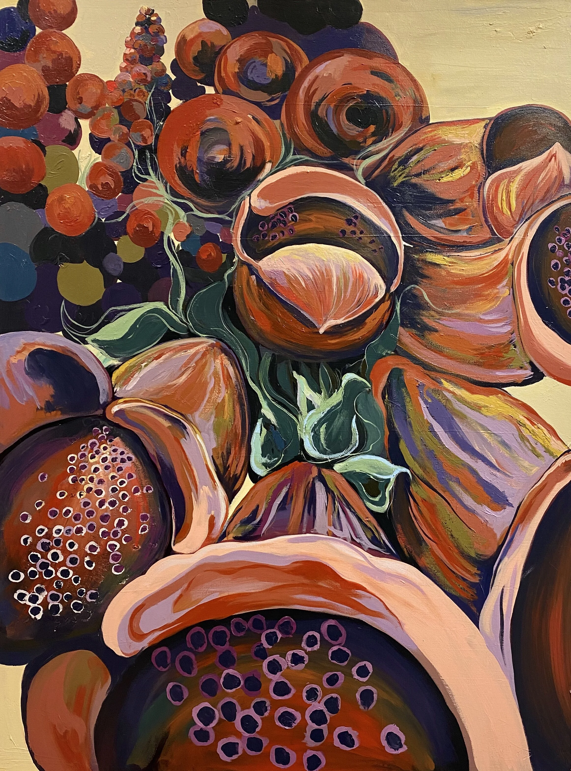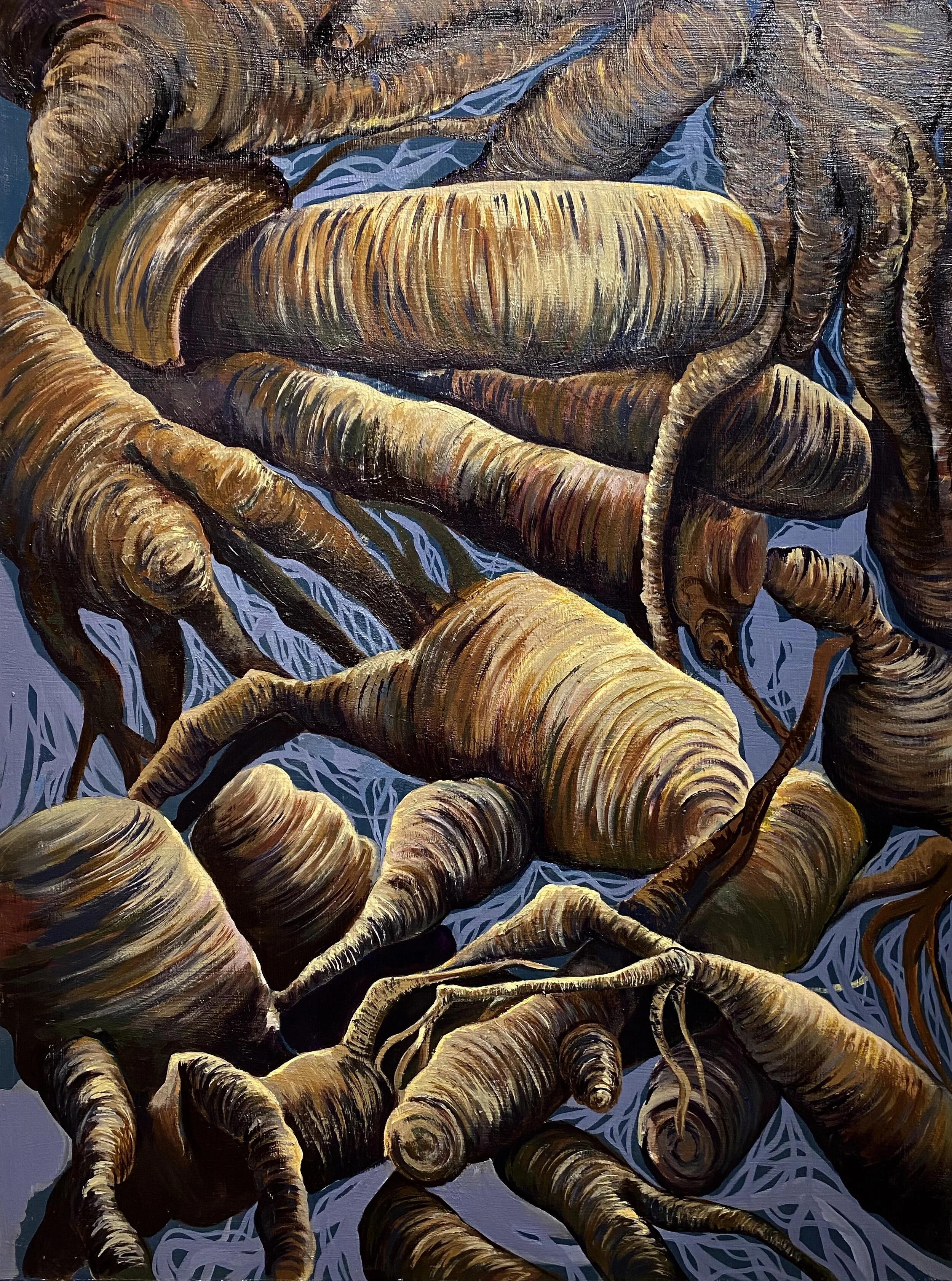 My work is a progression of my research and exploration based around medicine, disease, healing, and the effects it has on our bodies. These paintings consist of the representation of illness through botanical art, figures, human body parts, and my own representation of a healing environment. Investigation is not just conducted through articles, books, and research. Painting gives me a way to conduct healing and research a field I have always gravitated towards.